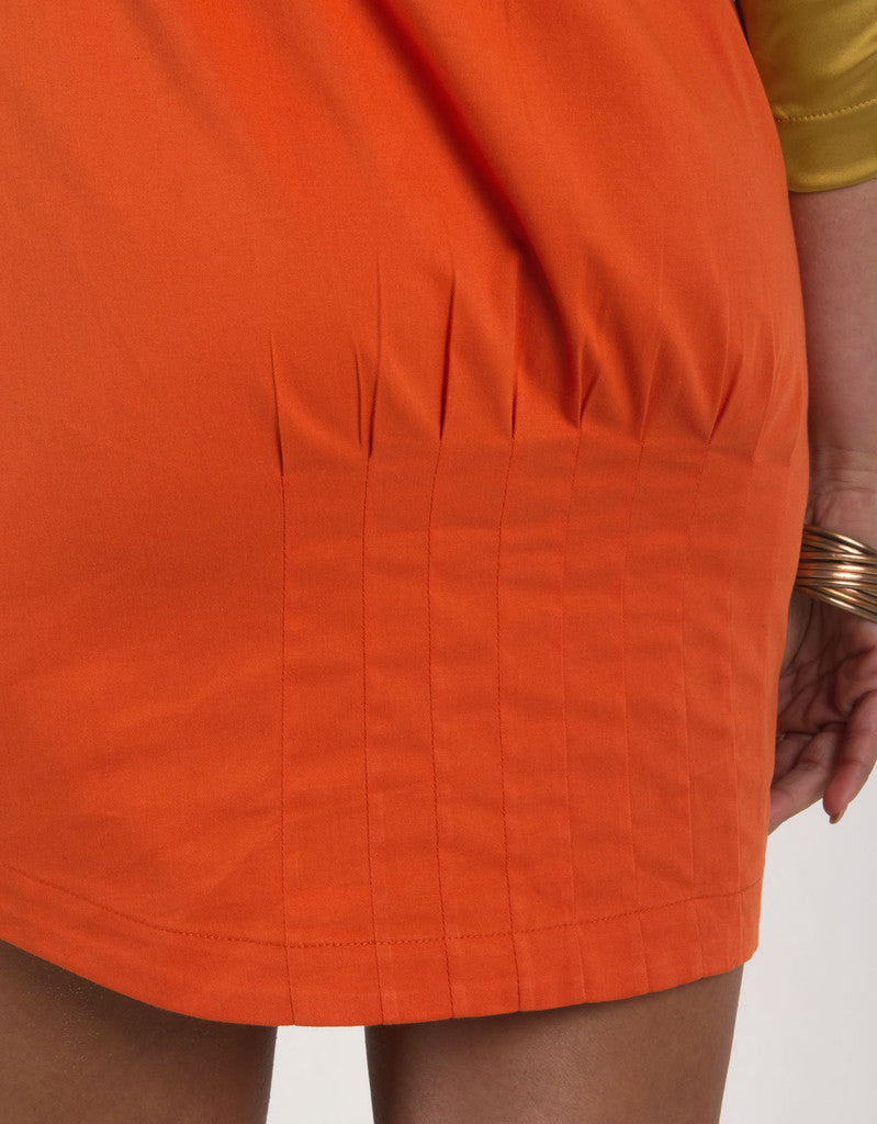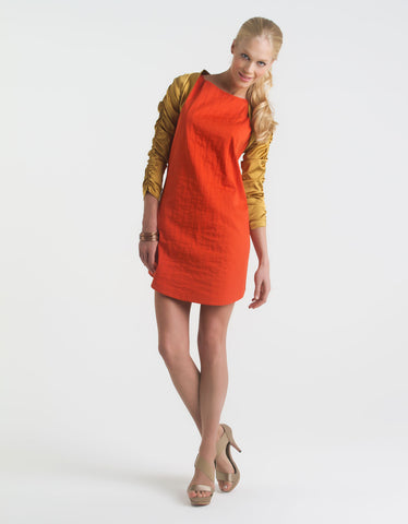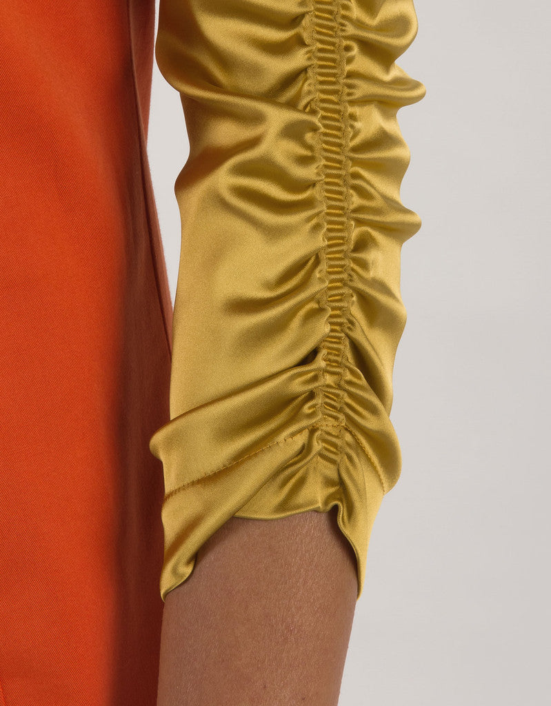 Little jacket with gathered important seams that follow the entire length of the sleeves.